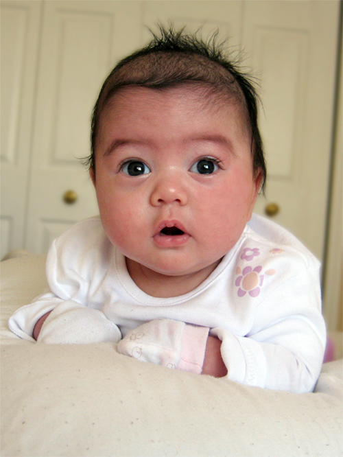 We can't believe our little baby girl is now 4 months old. If she was born on her due date she would now be 6 weeks old. She is doing incredibly well and the last couple of days she has started sleeping through from midnight until around 7am. She certainly loves her food and is now 10lbs 13oz. Amazingly she has already started to tell us when she is hungry in sign language, although she shouldn't be doing that until at least 6 months old (corrected age). She now smiles a lot, has a little giggle and really loves play time. Latest follow up at the hospital went really well and she passed all their tests with flying colours :-)
