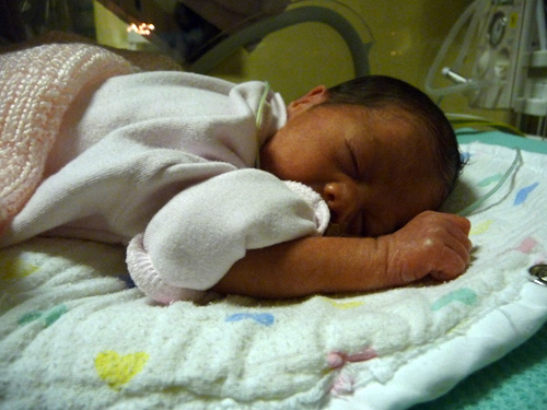Monica hasn't been back on the CPAP since I last posted which is absolutely superb and way more than we could ever have hoped for at this stage (it basically means she is breathing fine by herself without getting into any difficulty and without any need for a machine to help with the air pressure). I guess we'll never know if it was the steriods that did the trick or whether her little lungs were mature enough anyway, but either way we're very very thankful. It is certainly heartbreaking to see some of the other poor tots having trouble breathing or forgetting to breathe.